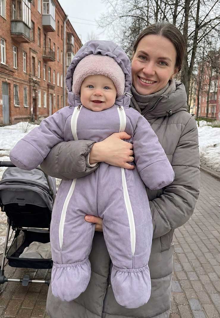 - Используйте комбинезон как самостоятельную одежду, так и в комплекте с меховым конвертом зимой